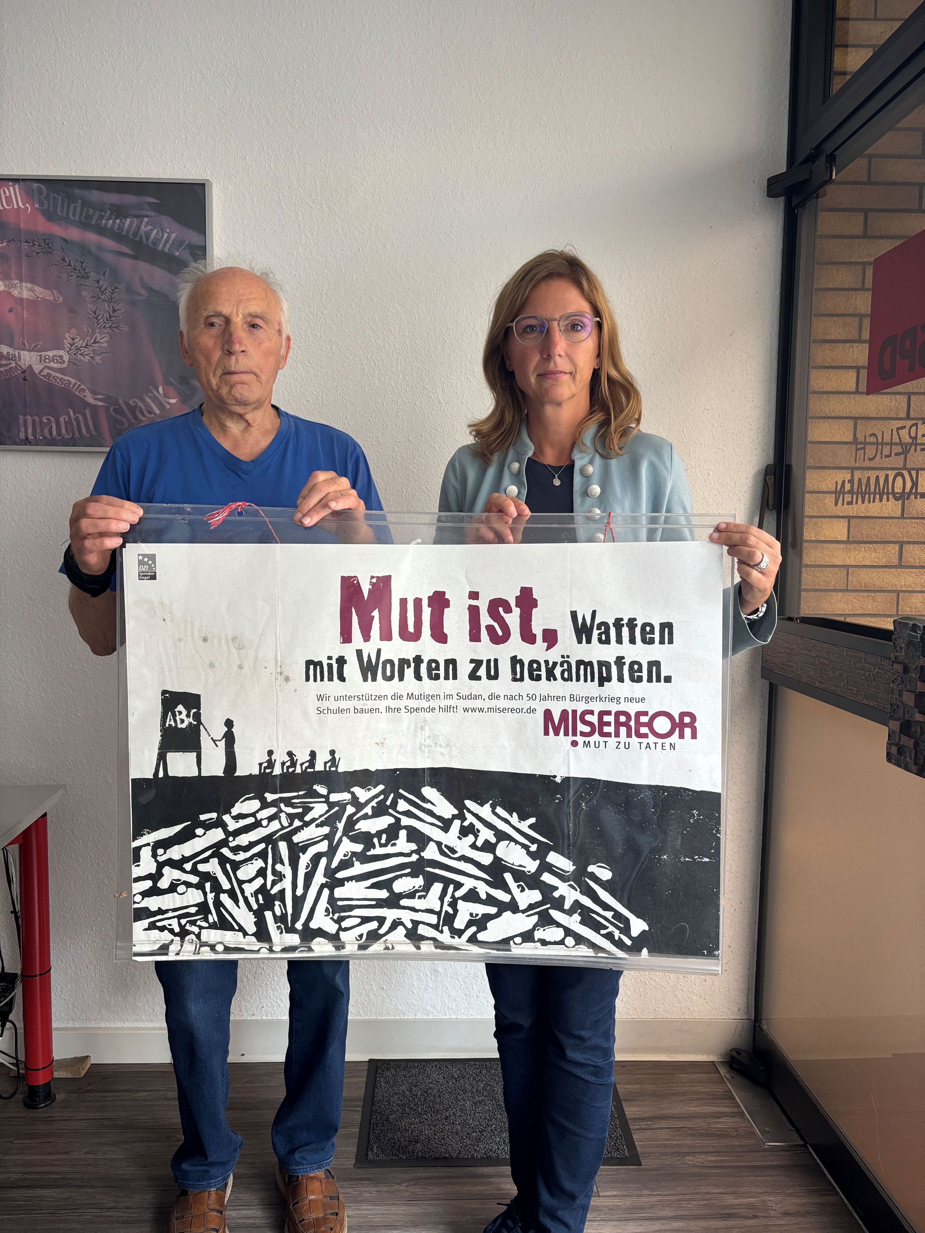 Betzdorf – Unter dem Motto „Mut ist, Waffen mit Worten zu bekämpfen“ unterstützen die Landtagsabgeordnete Sabine Bätzing-Lichtenthäler und der Betzdorfer Friedensaktivist Herrmann Reeh die aktuelle MISEREOR-Aktion für Frieden und Gerechtigkeit. Beide engagieren sich seit Jahren für Abrüstung – Bätzing-Lichtenthäler hat den ICAN-Vertrag zur weltweiten Ächtung von Atomwaffen unterzeichnet, der 2017 von der UNO beschlossen und 2021 in Kraft gesetzt wurde.