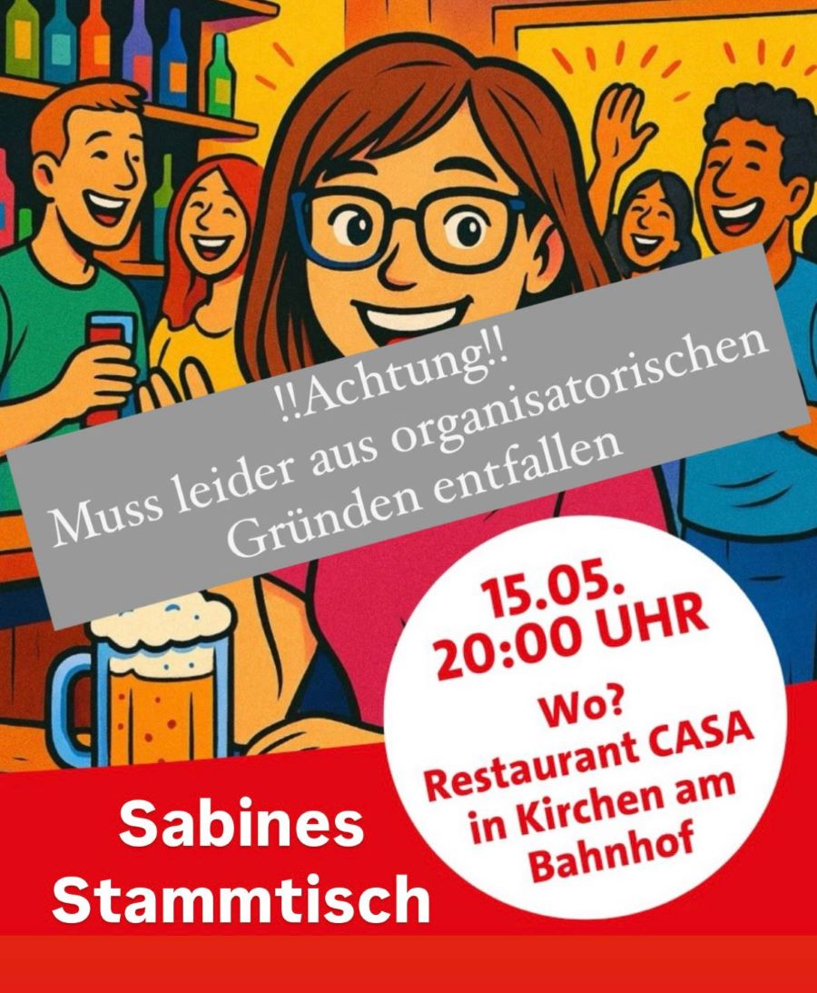 #Sabines Stammtisch am 15.05.2025 im Casa in Kirchen muss leider aus organisatorischen Gründen entfallen!!!